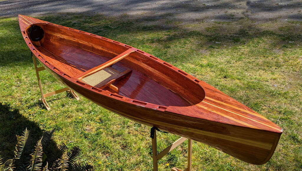 Redwood is an 11.5-foot cedar strip canoe built by the 2025 boatbuilding class and instructor, local boatbuilder Rick Crook. The winner will be drawn on August 10 at 12 pm at the PH Wooden Boat Show.